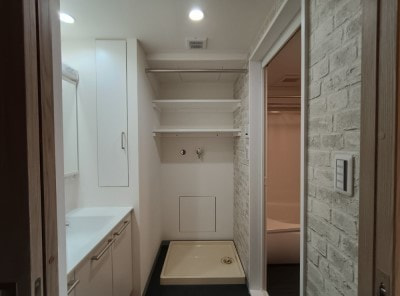 洗面脱衣室は、白を基調に清潔感のある内装に仕上げました。