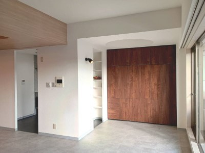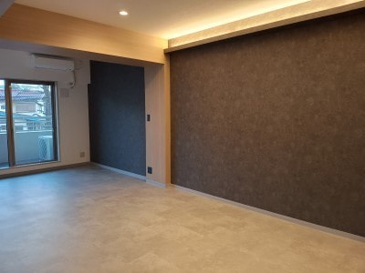 マンションによくあるLDKと繋がる和室の間仕切壁を取り払い一体化しました。